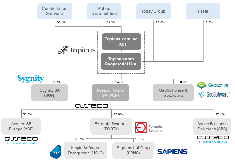This year, Topicus entered a new stage of growth by acquiring a minority stake of ~25% in Asseco Poland S.A. (ticker: ASC.PW) for approximately €408m (using more than ’25 expected FCF).